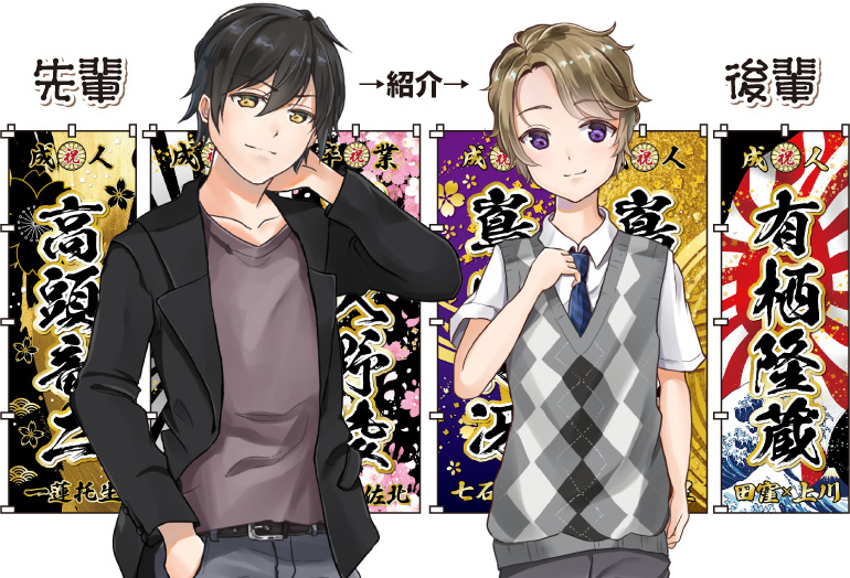 新時代を切り拓く、若者に課せられた課題です。若い人には無限の可能性があります。しかし、新しいものを作る上で、そのヒントは常に過去にあります。先輩から学ぶところがあれば吸収する、それが進化の一歩となります。のぼりも「かっこいい」と思えばどこで作ったのか紹介してもらうのがいいでしょう。紹介してもらうことにより不安が軽減されます。先輩からノウハウを教えてもらうのもいいでしょう。紹介は自分の立ち居振る舞いをスマートにする鍵なのです。 |
