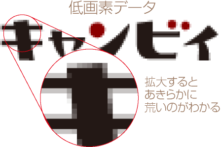 | 画素の低いロゴ・イラスト・写真は印刷するとシャープさがなくなります。パソコンやスマートフォンの画面ではキレイに見えていても、印刷の画素に十分ではない場合があります。 |