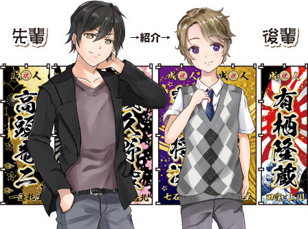 | 先輩からの紹介で「センパイ紹介割引き」が適用されます。前回の先輩が作ったのぼりがカッコイイと思った方、先輩から紹介して貰いましょう。通常料金からお値引きがあってお得にのぼりが作れちゃいます! 当サイトではデザインが豊富、きっとお気に入りのデザインが見つかるはず。先輩が使用したデザイン柄、新たに自分が選んだデザイン柄でもOKです。こだわりのデザインがある方はオーダーメイド製作も可能。当サイトで思い出深い晴れの門出を祝うカッコイイのぼりを提案します。 |